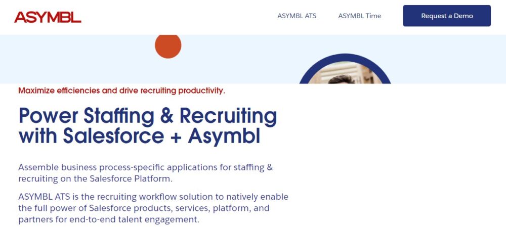 Asymbl, Inc. is a company that offers specialized applications for Salesforce's Customer 360 portfolio. They focus on staffing and recruitment, providing innovative solutions that help companies upgrade their operations, attract top clients, streamline workflows, and improve the talent experience.