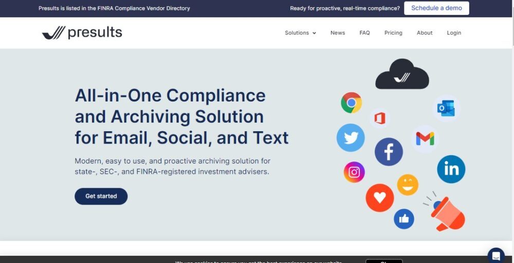 Presults offers a comprehensive compliance and archiving solution for email, social media, and text. Their unique business model caters to the requirements of investment advisers, broker-dealers, and other professionals in the financial services industry.